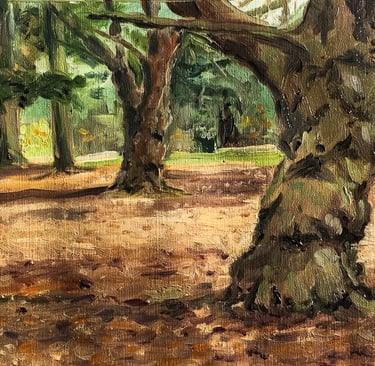 Intimate nature paintings that reveal the delicate beauty of leaves, water, and light in quiet moments.